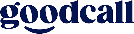 The word "goodcall" in bold, dark blue lowercase letters with a curved line beneath, resembling a smile.